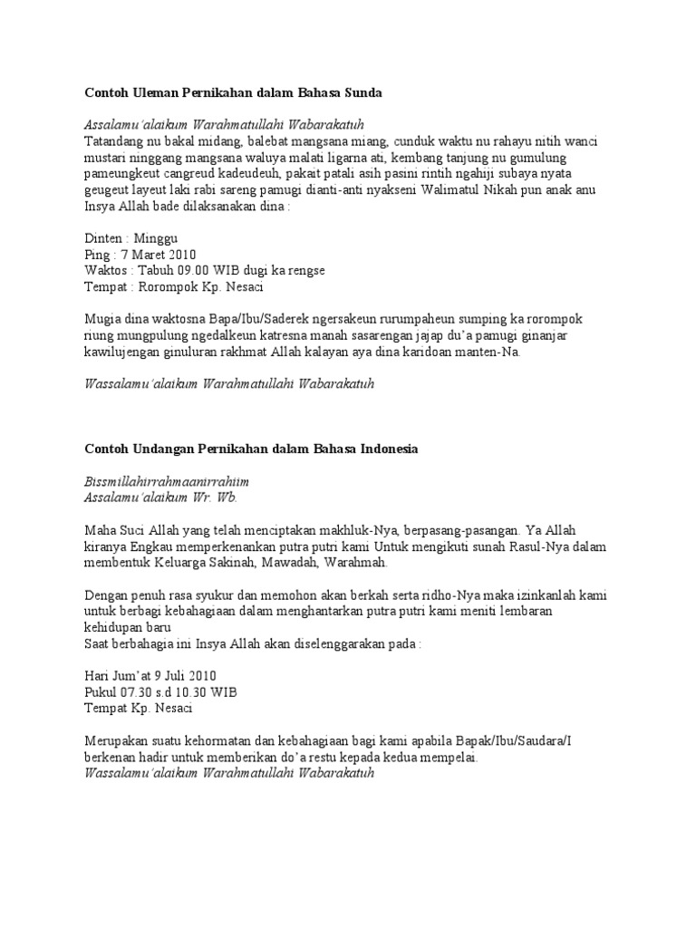 Contoh Uleman Pernikahan Dalam Bahasa Sunda