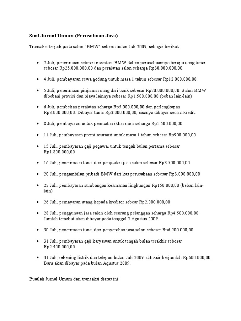 Jika sudah paham untuk dapat memahami jurnal umum diperlukan latihan dengan contoh soal supaya terbiasa dengan. Contoh Kasus Soal Akuntansi Perusahaan Jasa. Semoga latihan soalnya bermanfaat ya.