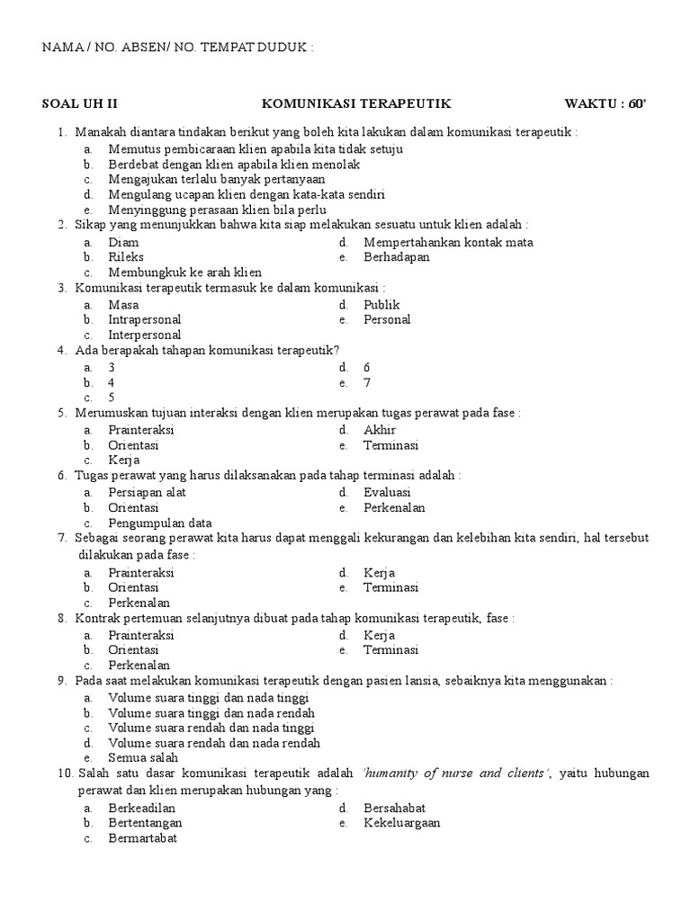 Soal Uh Ii Komunikasi Terapeutik